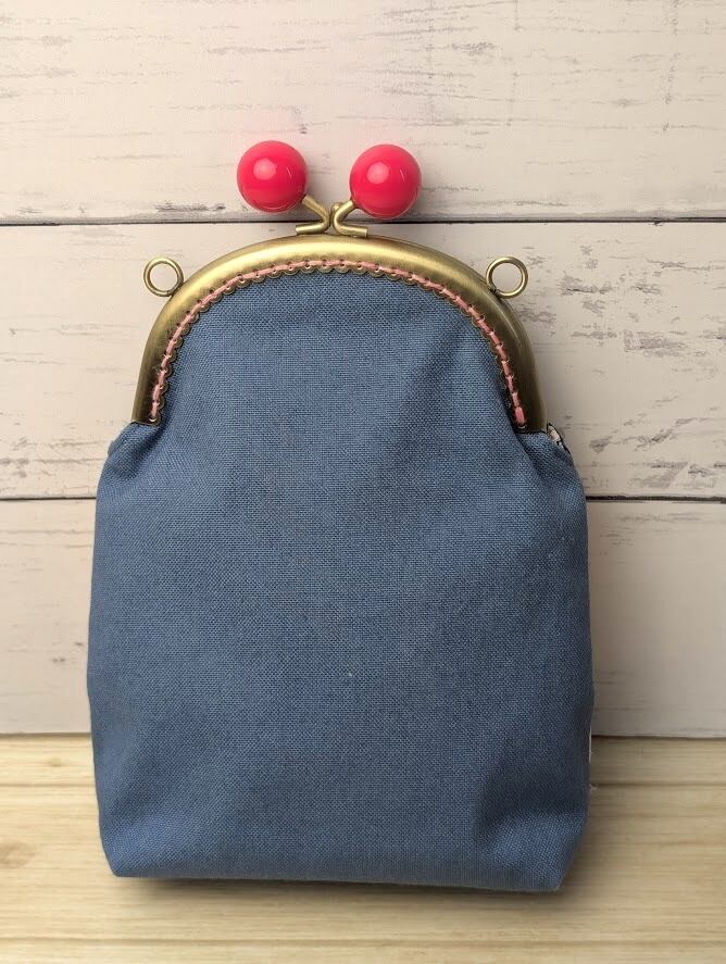 がま口は桜に色を合わせ、ピンクの玉つきがま口をつけました。