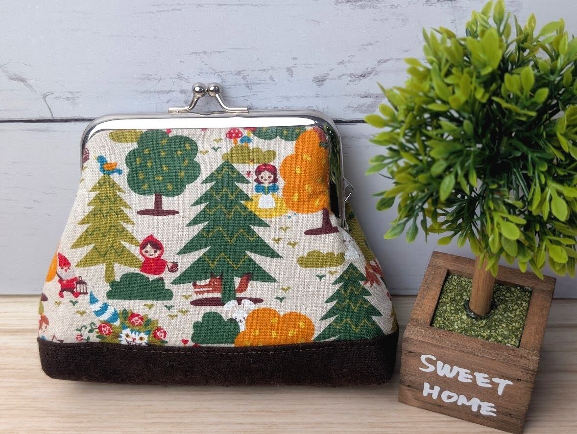 赤ずきんちゃん、白雪姫、アリスなど童話の世界がてんこ盛りなかわいいがま口ポーチです。