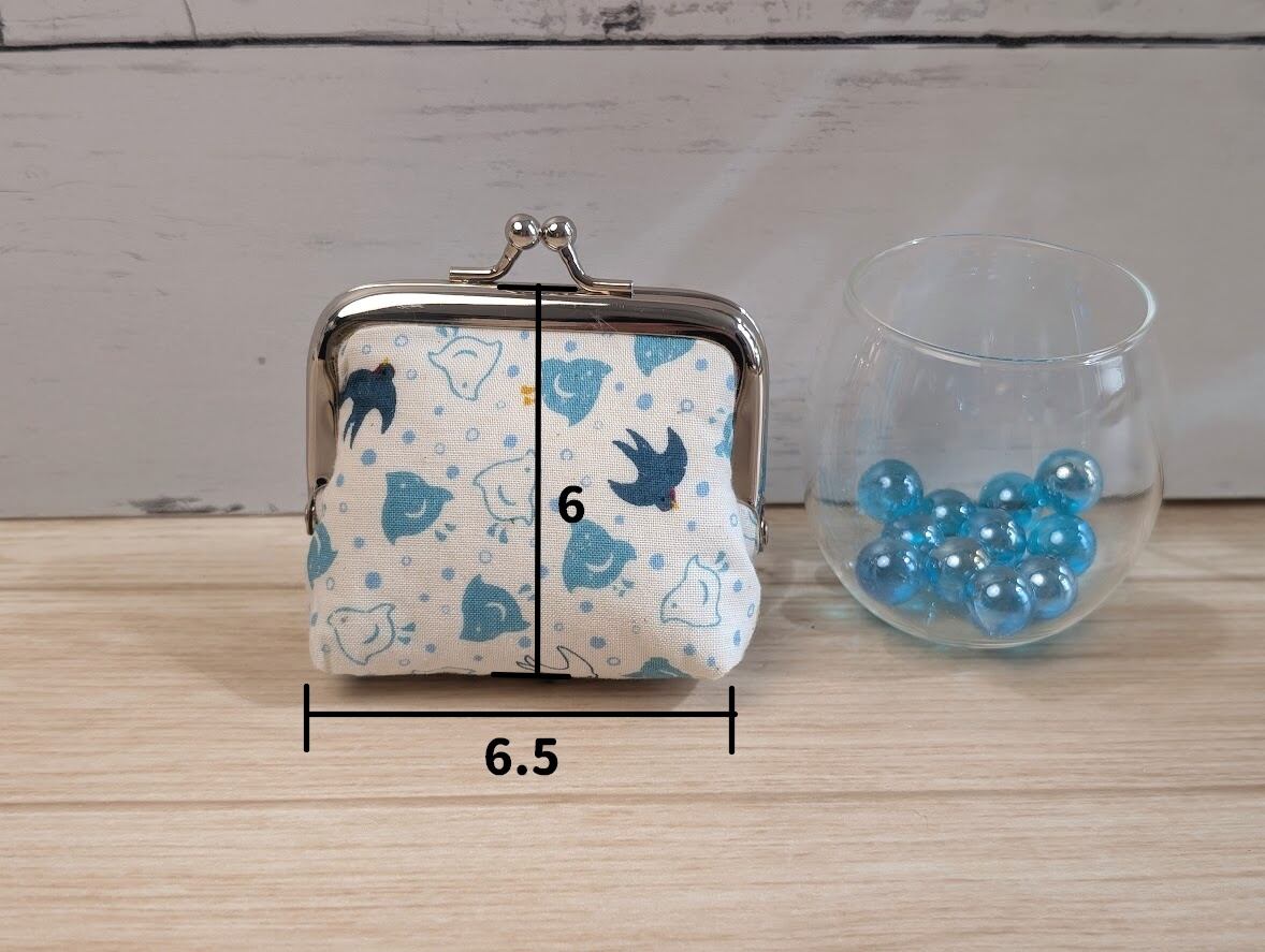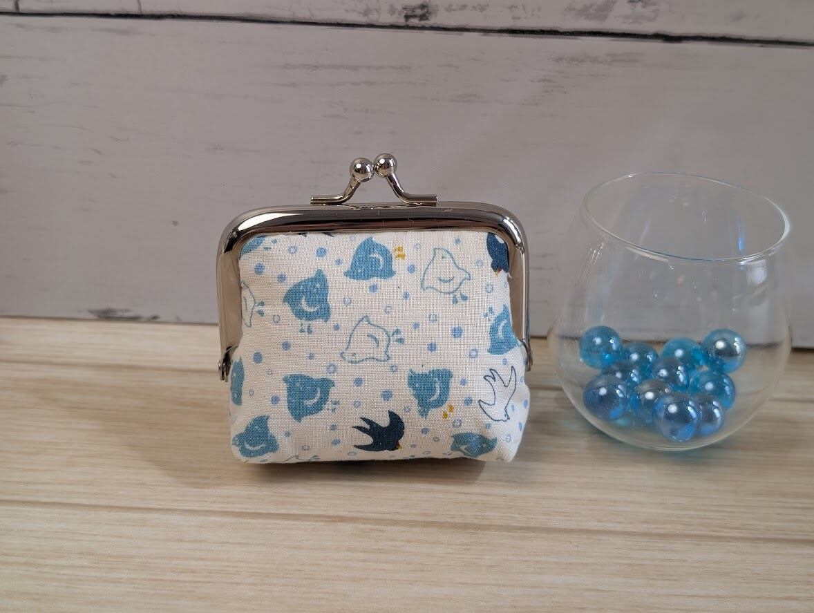 丸いフォルムが可愛い青と水色の千鳥柄が涼やかながま口です。