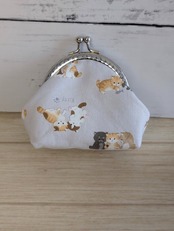 薄いグレーが上品でもあり、猫ちゃんたちが可愛いパックリがま口です。