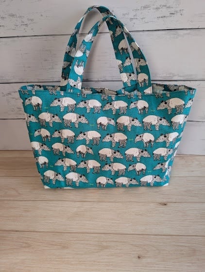 悪夢を食べるバクさんの珍しい生地で小さなトートバッグを作りました。
