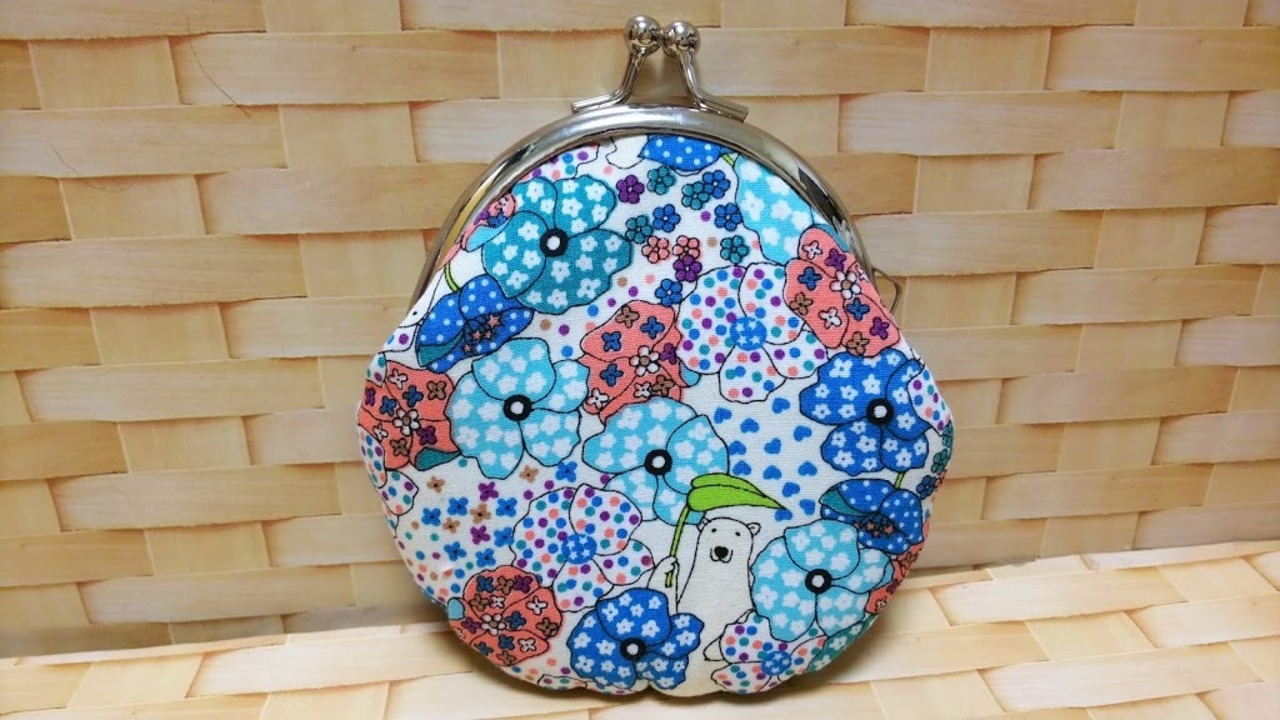 水色を基調としたお花いっぱいの中にしろくまさんが覗いている可愛らしい生地で作成したがま口になります。