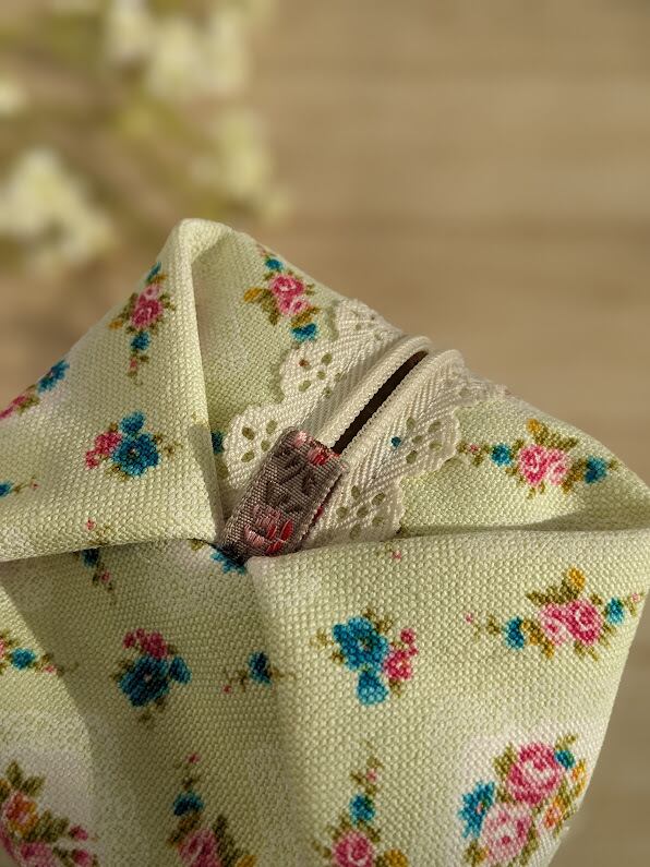 バラ香る黄緑のキャラメルポーチ