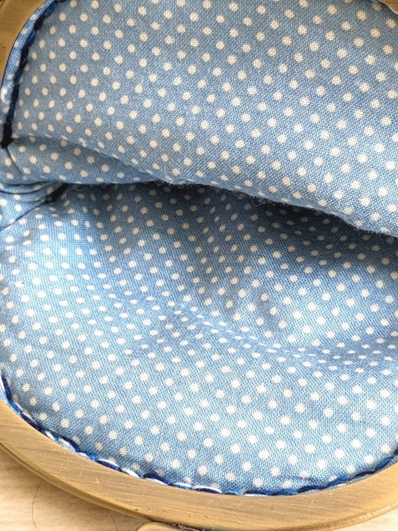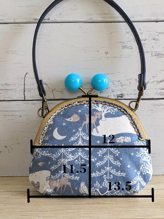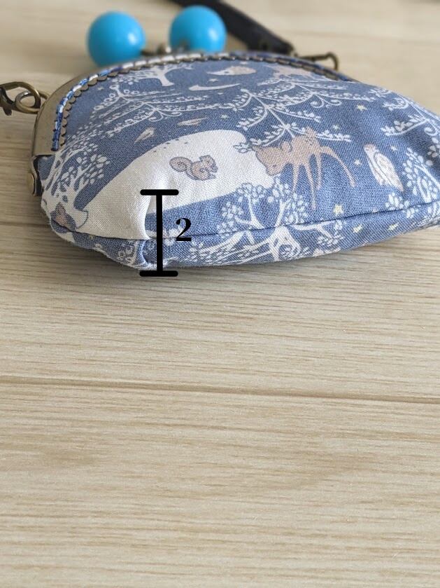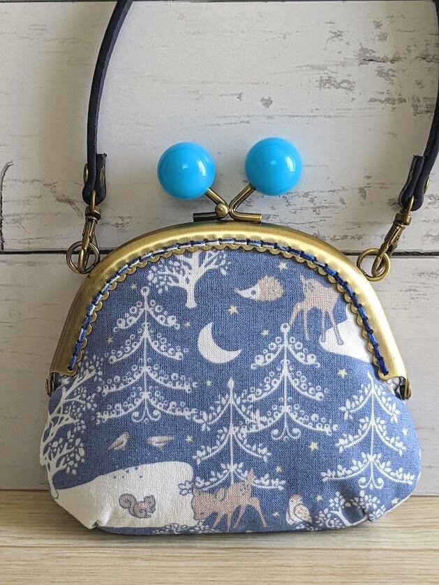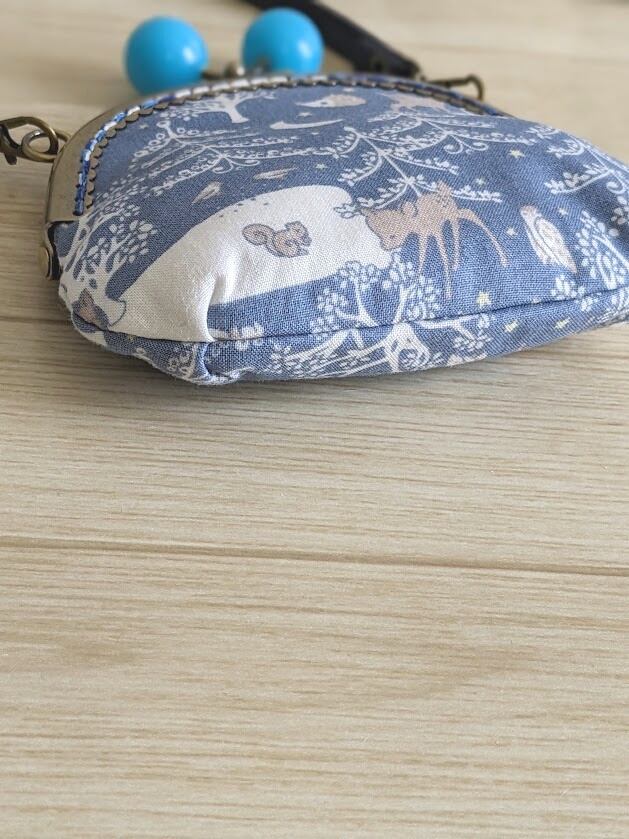 今回生地に合わせ、水色の玉突きがま口を使用しました。