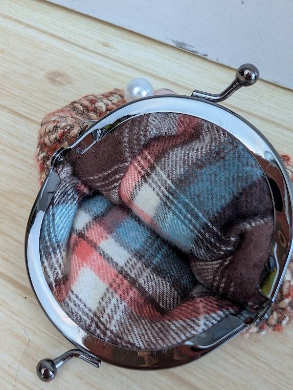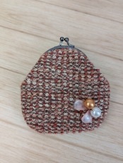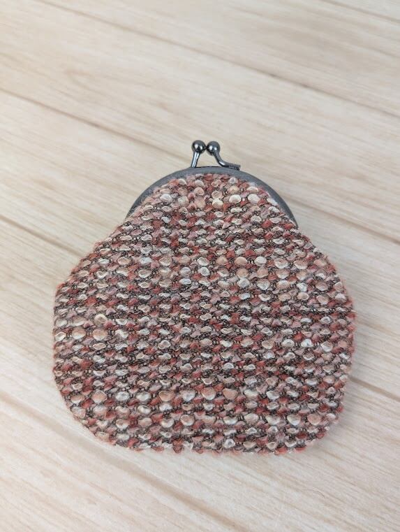 ループヤーンのようなポコポコした生地が印象的なくすみコーラルピンクのがま口です。